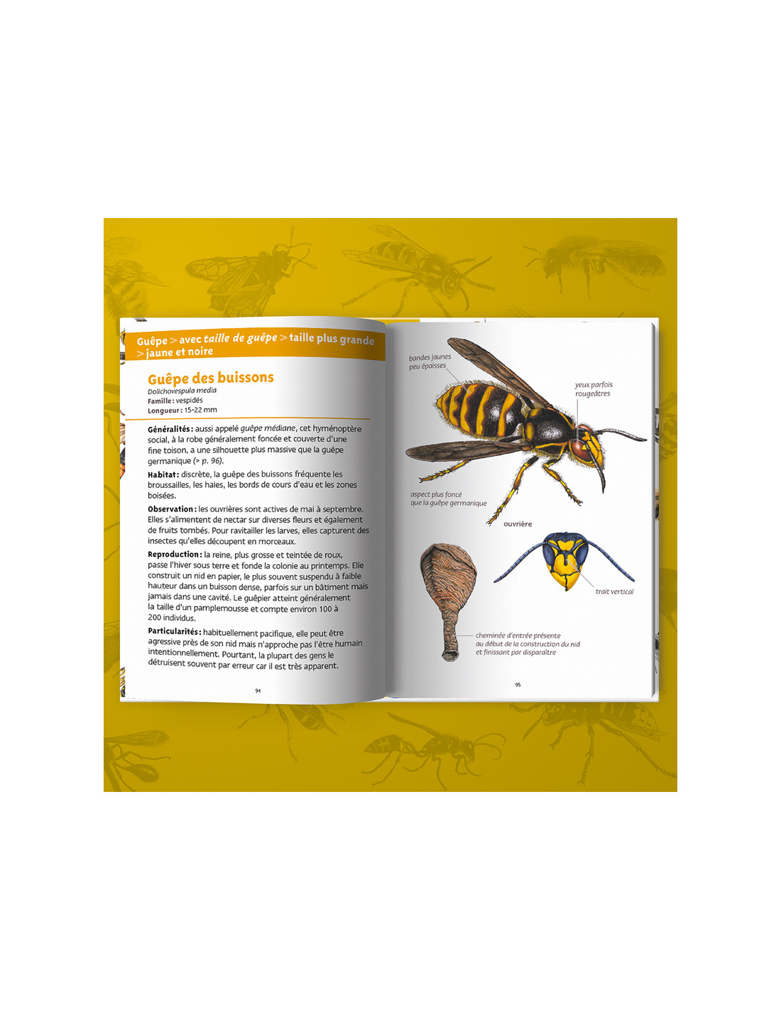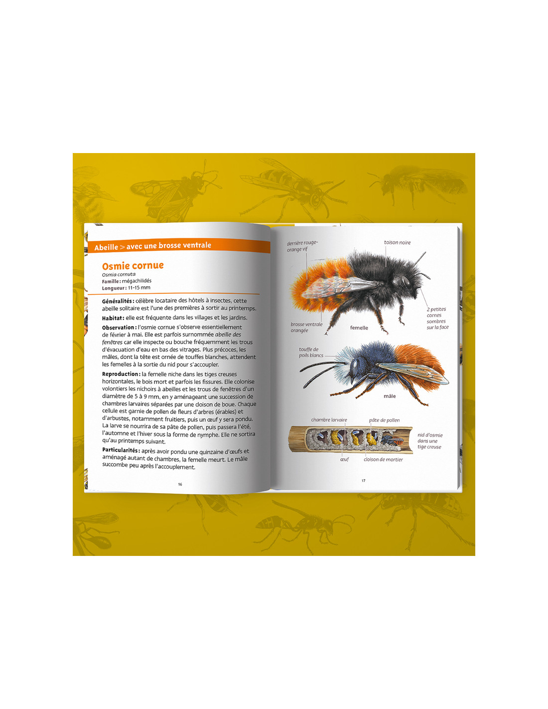 Le nouveau guide de la collection "Les petits livres de la nature" vous prend par la main pour identifier les abeilles sauvages et les guêpes les plus communes ou emblématiques de nos régions, que ce soit sur la terrasse, dans la prairie, en forêt, en ville ou à la campagne. Les pages superbement illustrées détaillent leur mode de vie, indiquent où les observer et révèlent leurs particularités.