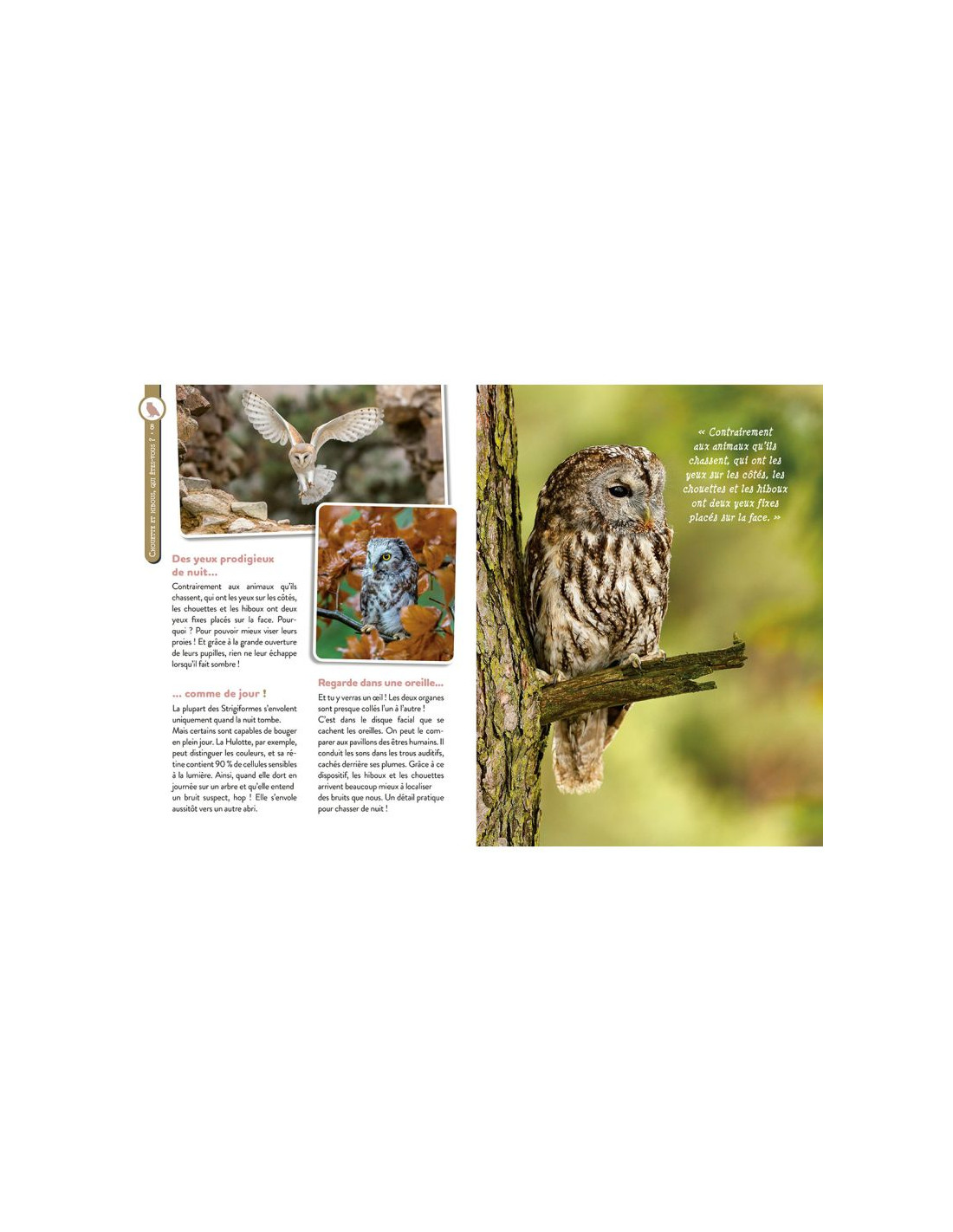 Chouettes et hiboux.... comment les différencier ? un livre documentaire richement illustré pour les Ptits curieux.