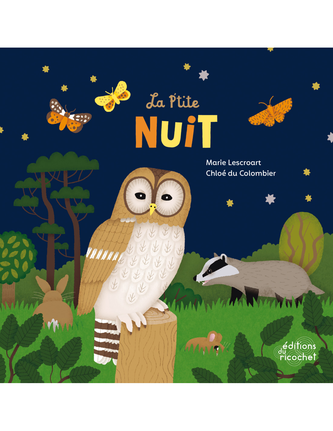 La P'tite Nuit des Éditions du Ricochet invite les enfants à découvrir la vie fascinante de la faune nocturne. Quand le soleil se couche, la nature s’éveille : la chouette hulule, le hérisson fouille, la chauve-souris virevolte et Dame ver-luisant brille dans l’herbe.