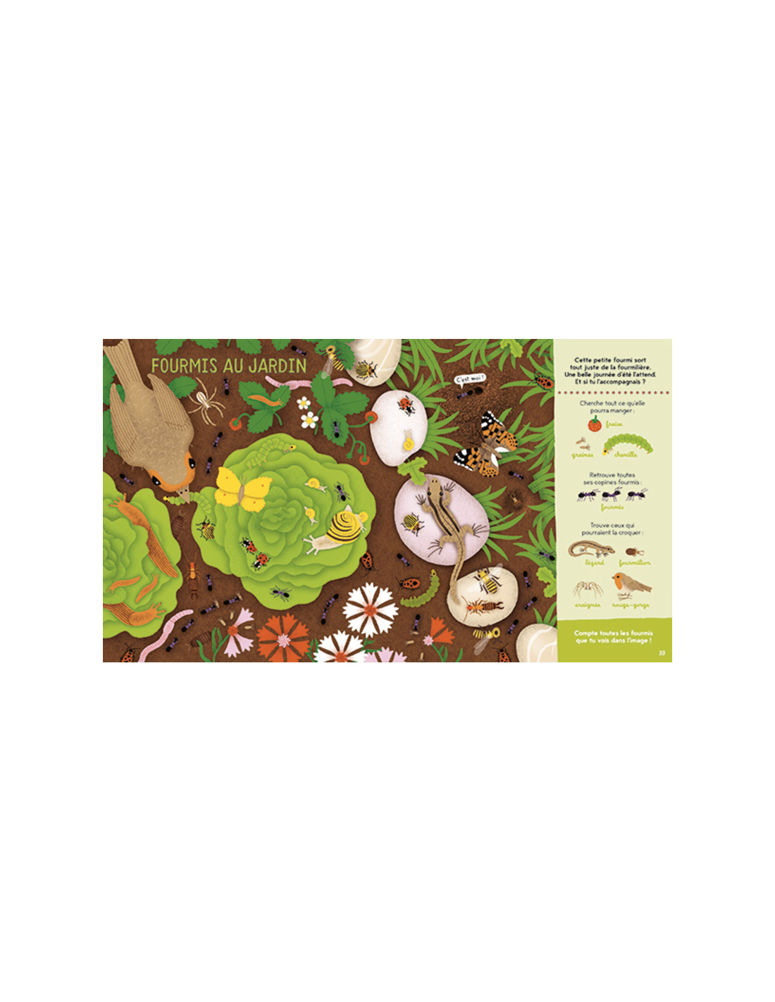Avec ces 32 cherche et trouve de la Petite Salamandre, offrez aux enfants, dès 4 ans, un environnement ludique pour découvrir la nature en s’amusant. Ils pourront percer tous les secrets de la forêt, de la campagne, de la montagne, du parc, de la mer et même du potager, tout en développant différents domaines d’apprentissage. Il suffit d’observer... et de jouer ! Dans ces pages superbement illustrées se cachent des centaines de végétaux et d’animaux, petits ou... gros !