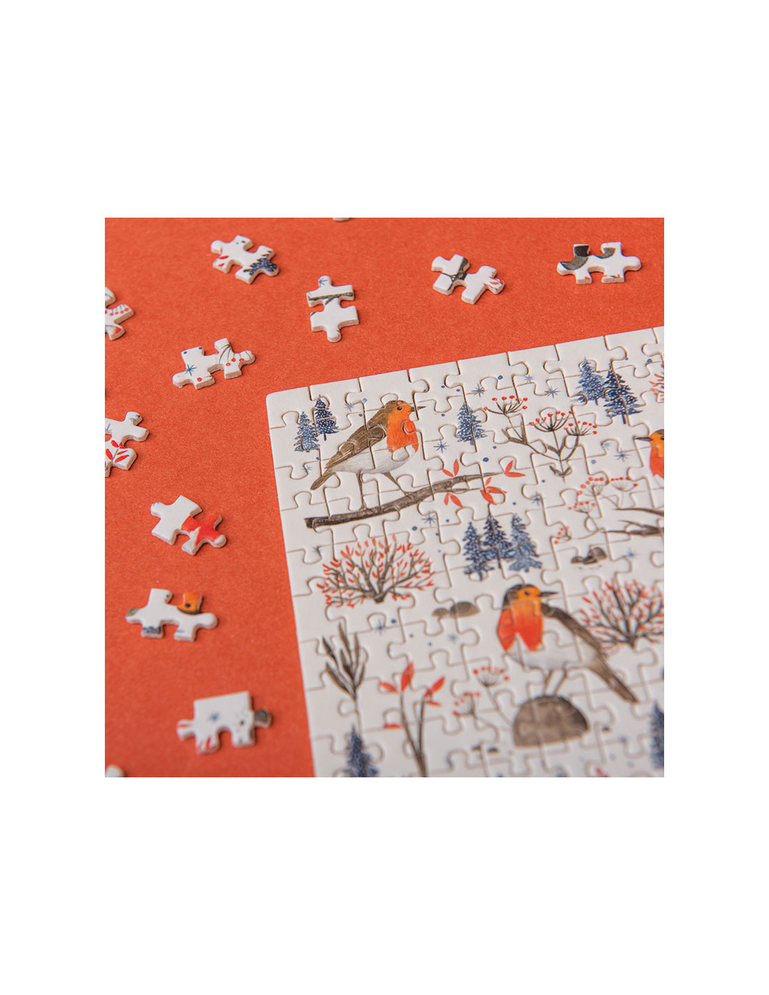 Laissez-vous séduire par une belle et délicate illustration de la faune à travers ce puzzle aux petites pièces. Un vrai challenge que les plus de 12 ans pourront tenter de relever ! 150 pièces pour découvrir des rouges-gorges, les baies et des arbres saupoudrés de flocons. Une ambiance hivernale parfaite pour un cadeau de fin d'année !